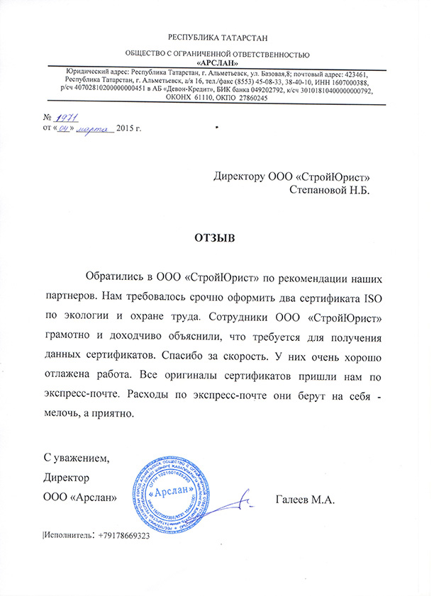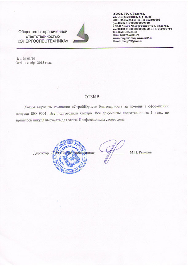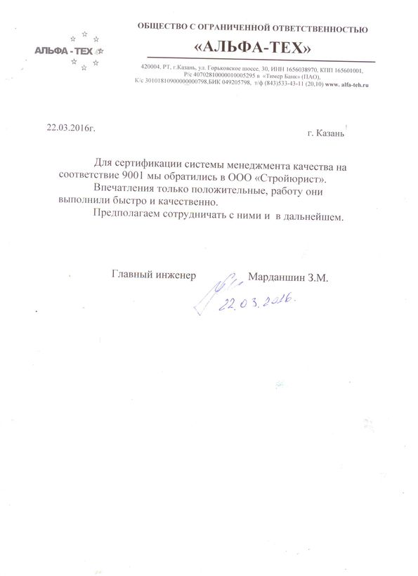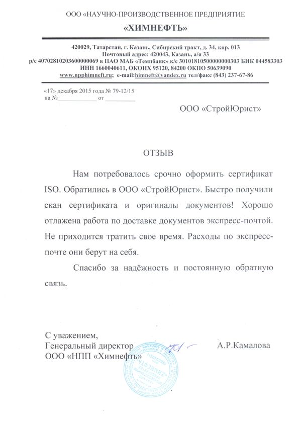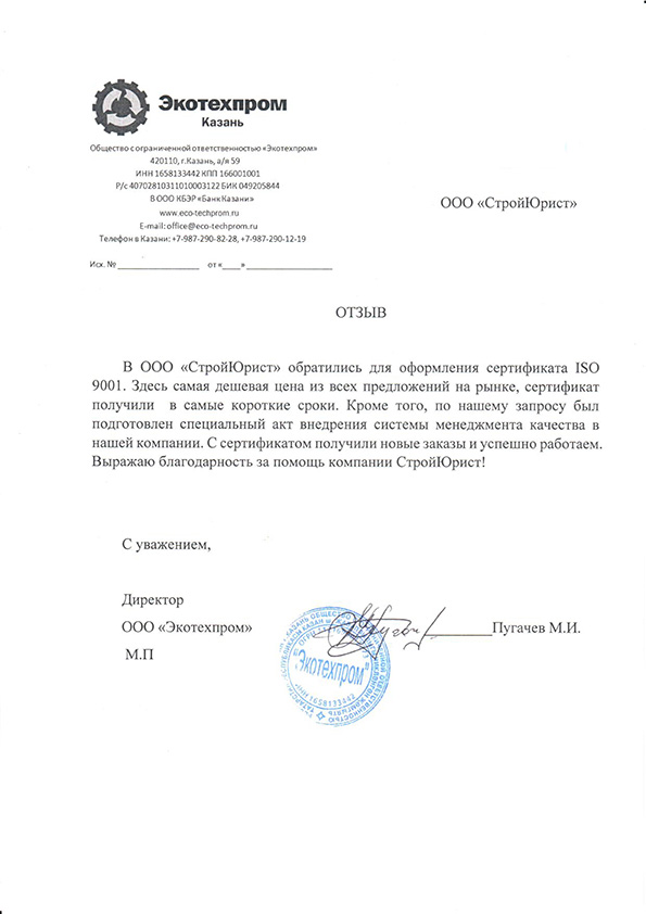 Отзывы клиентов "СтройЮрист" по ISO в Калининграде