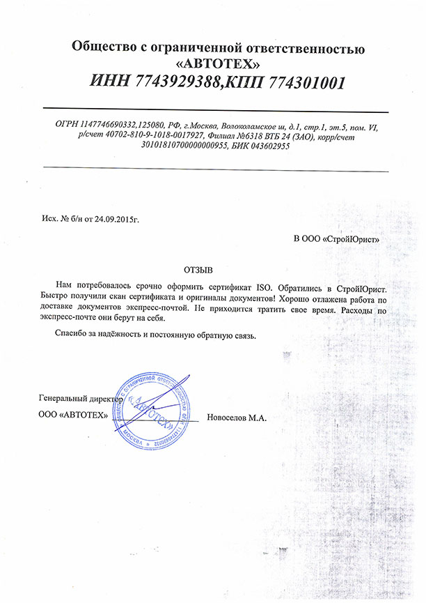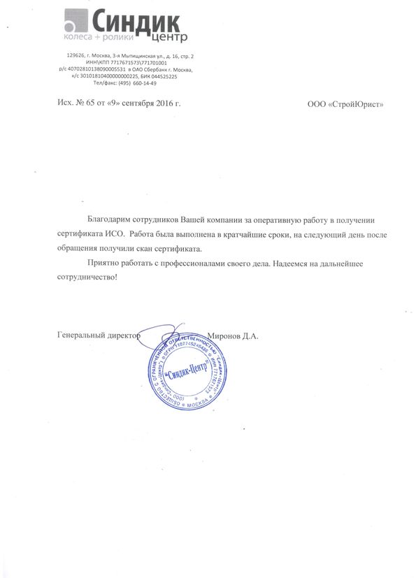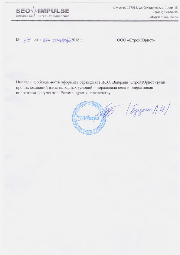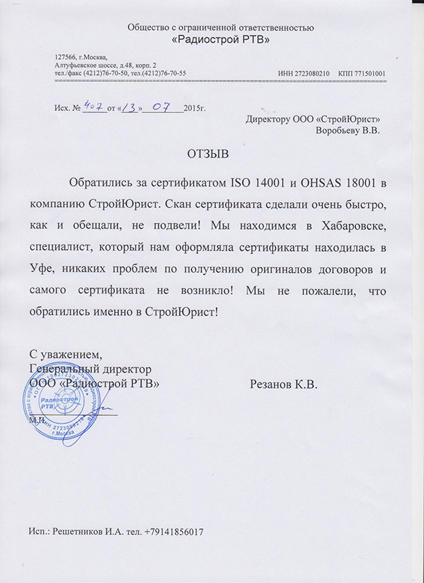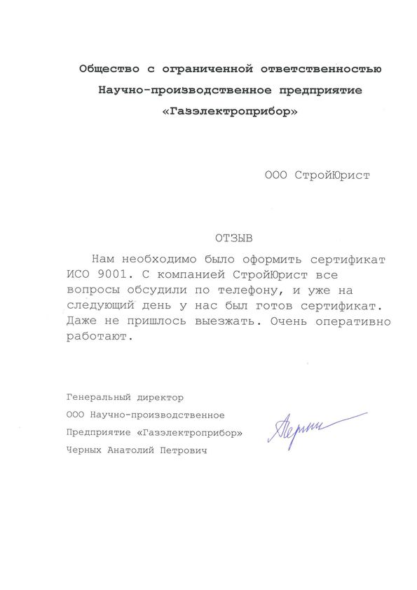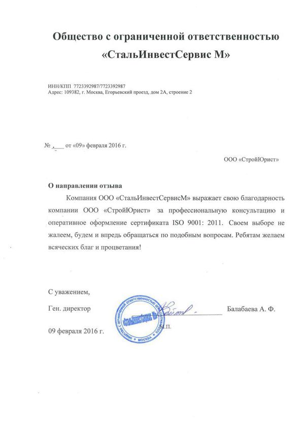 Отзывы клиентов "СтройЮрист" по ISO в Калининграде