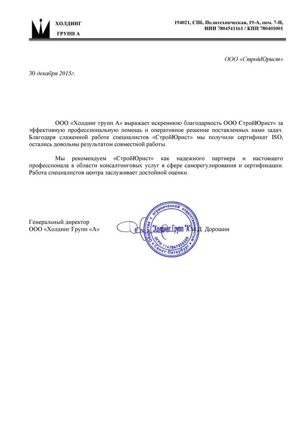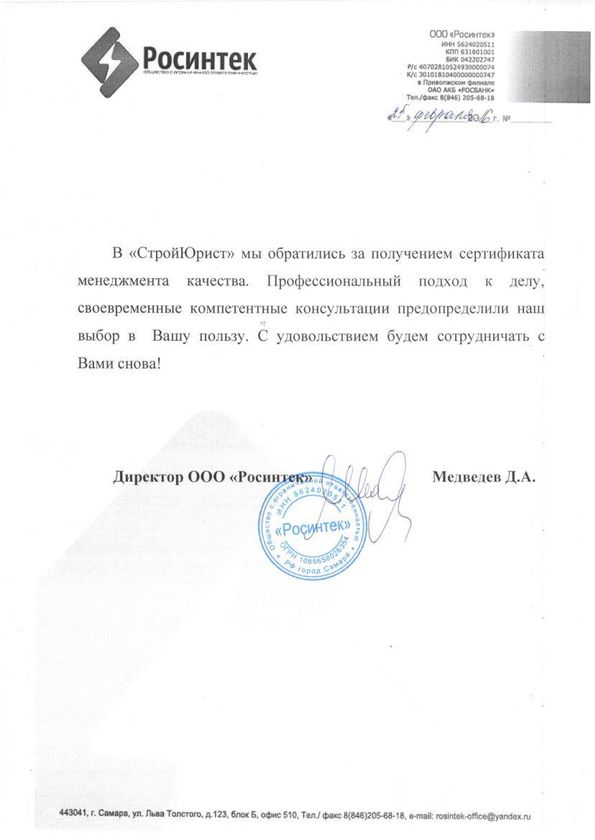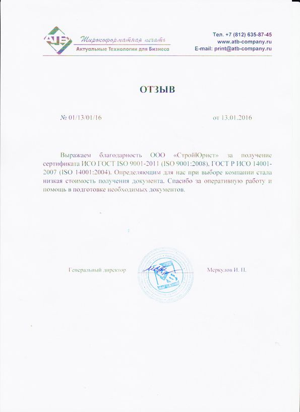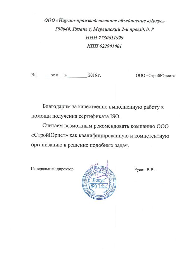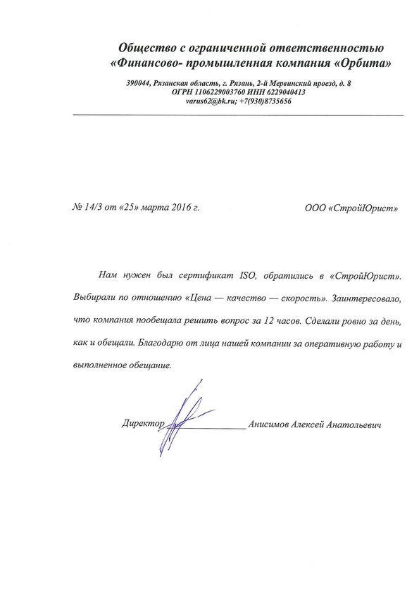 Отзывы клиентов "СтройЮрист" по ISO в Калининграде