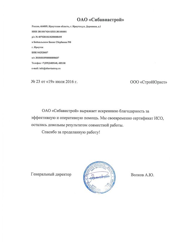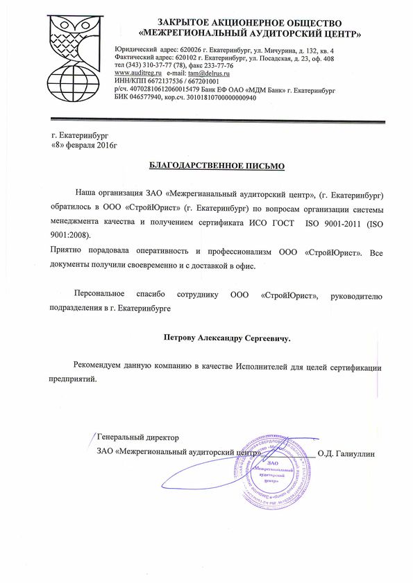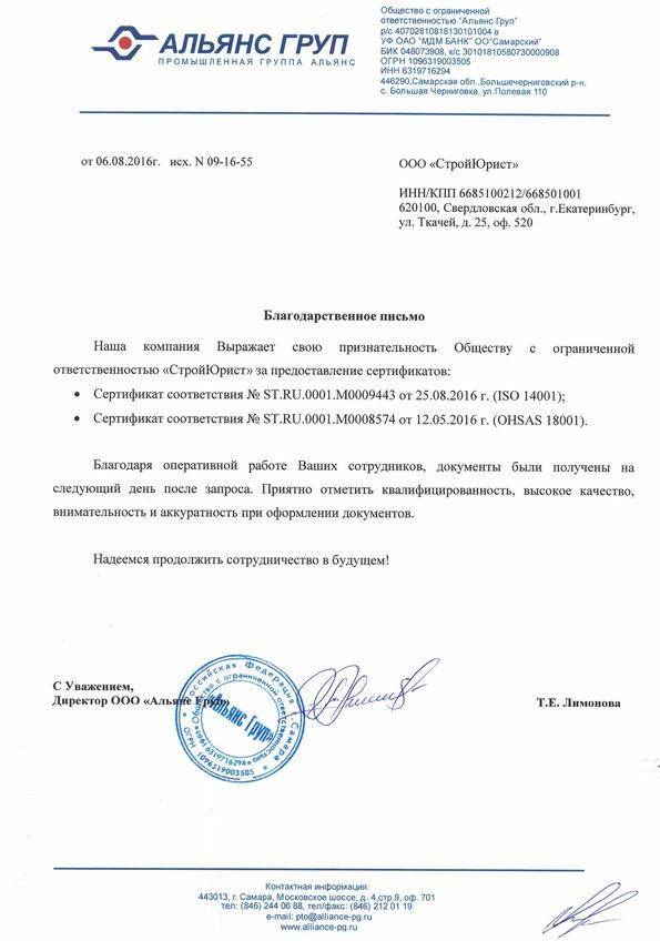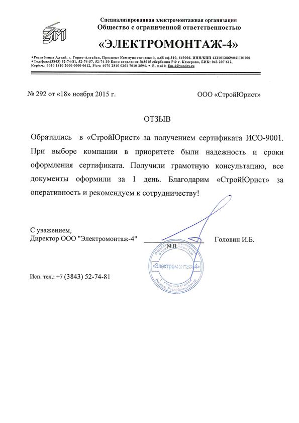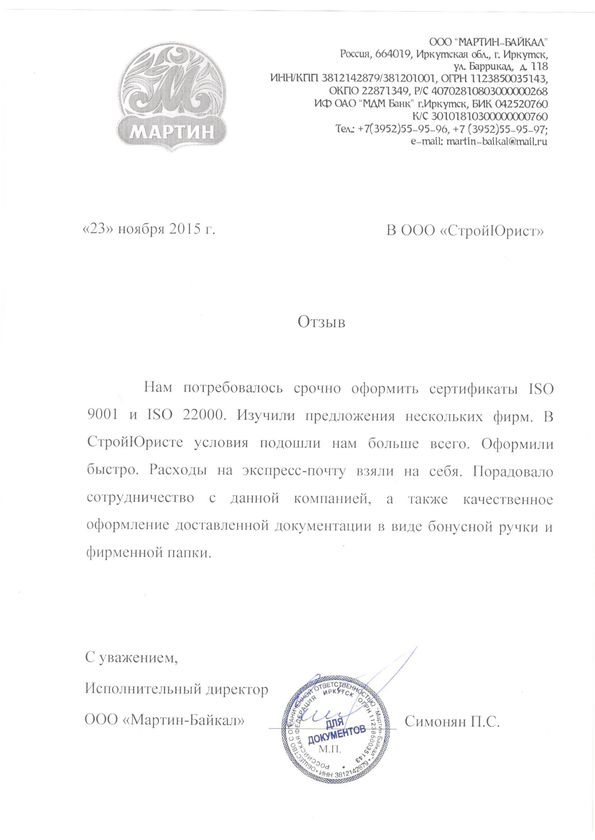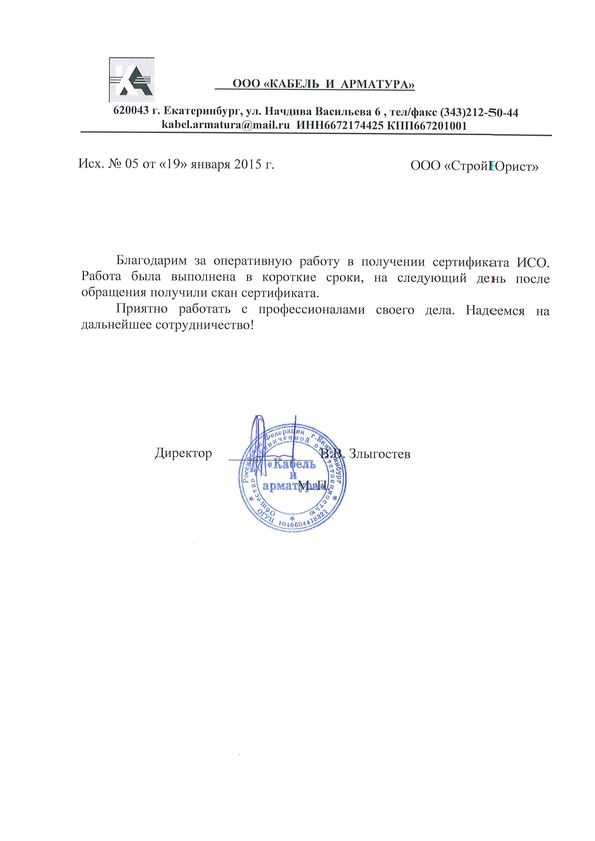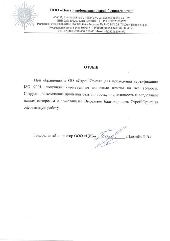 Отзывы клиентов "СтройЮрист" по ISO в Калининграде
