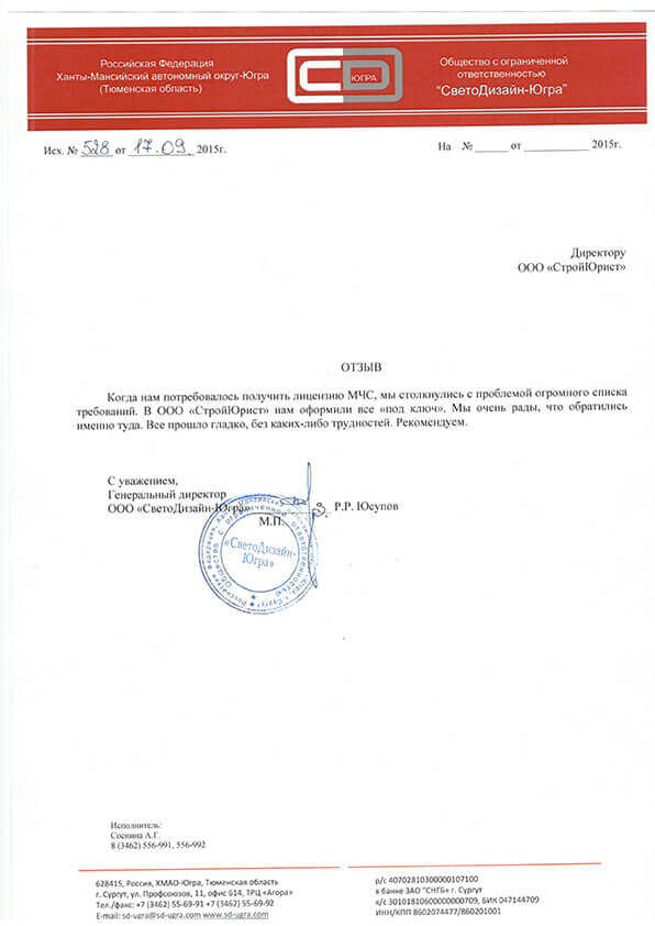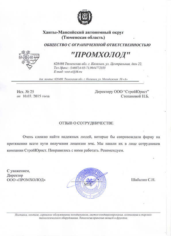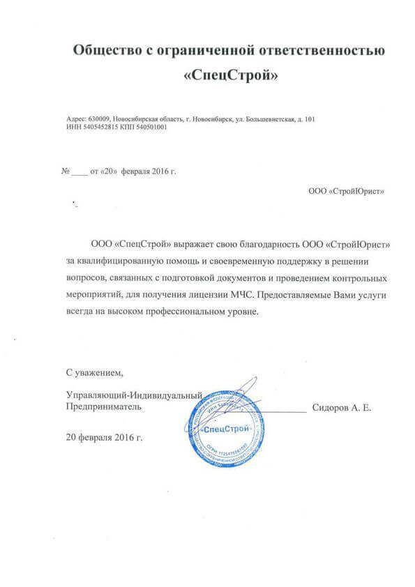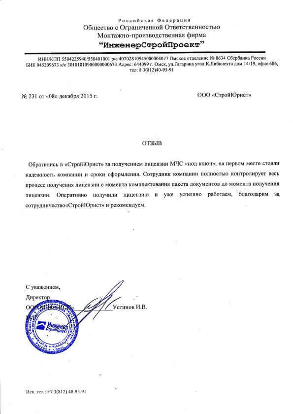 Отзывы клиентов "СтройЮрист" по лицензированию МЧС в Калининграде