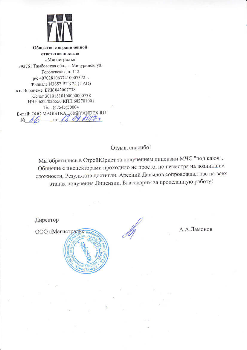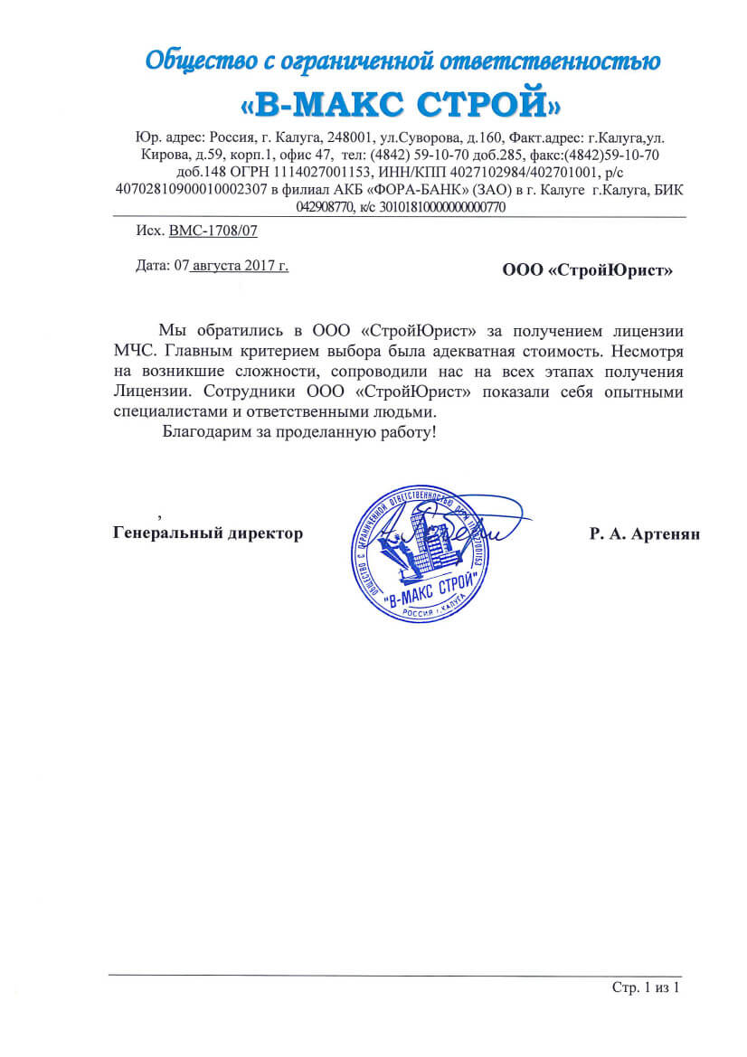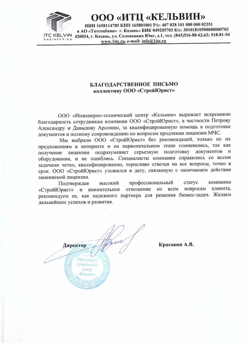 Отзывы клиентов "СтройЮрист" по лицензированию МЧС в Калининграде