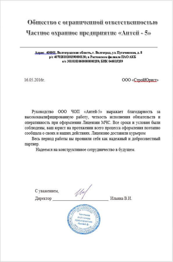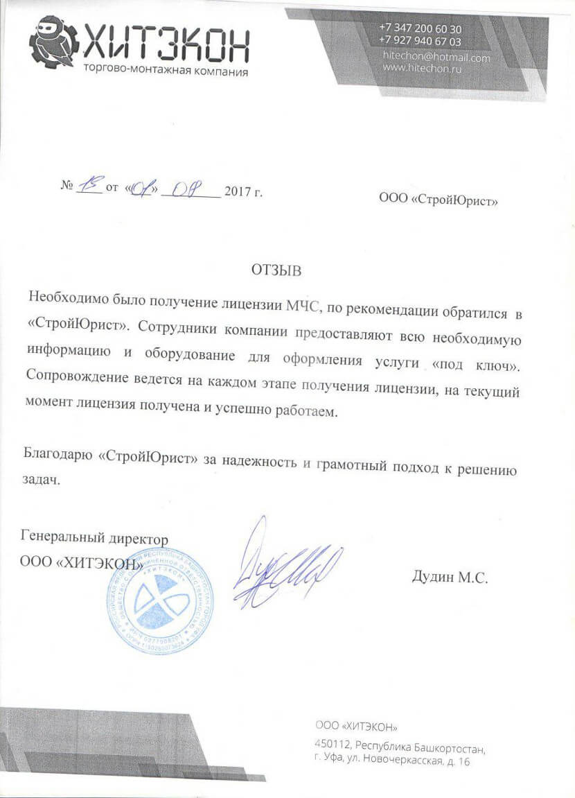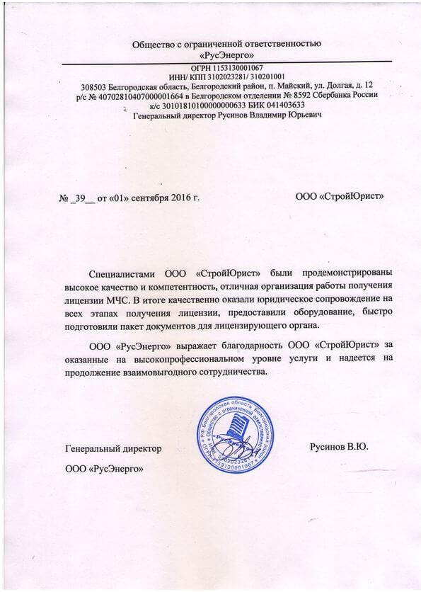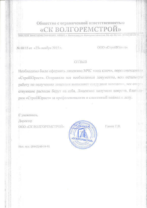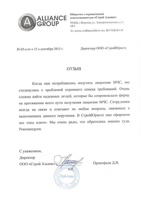 Отзывы клиентов "СтройЮрист" по лицензированию МЧС в Калининграде