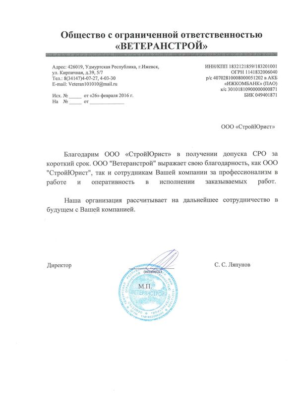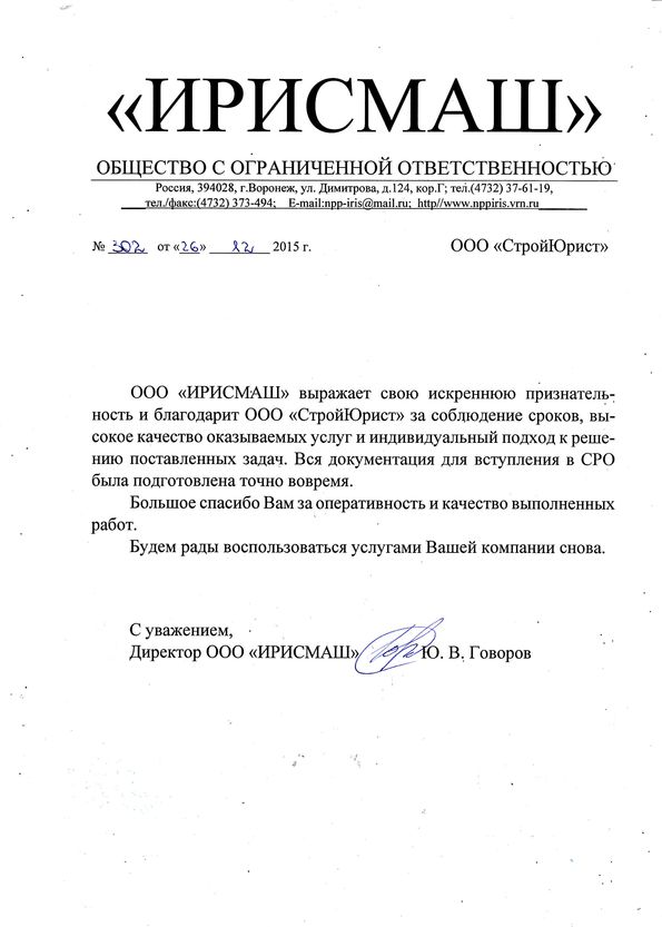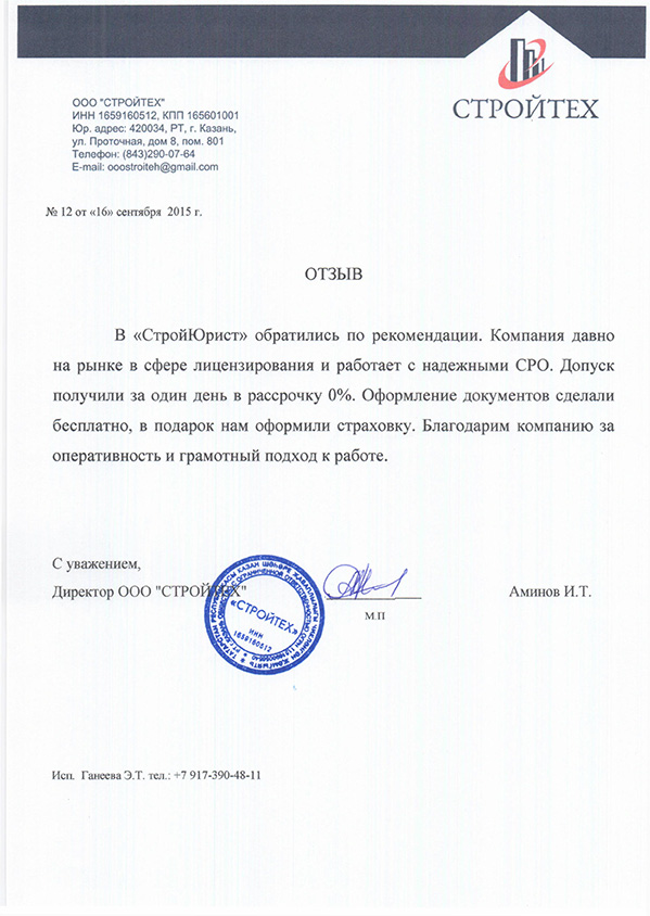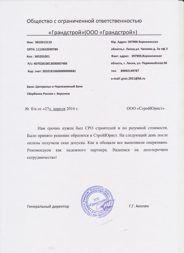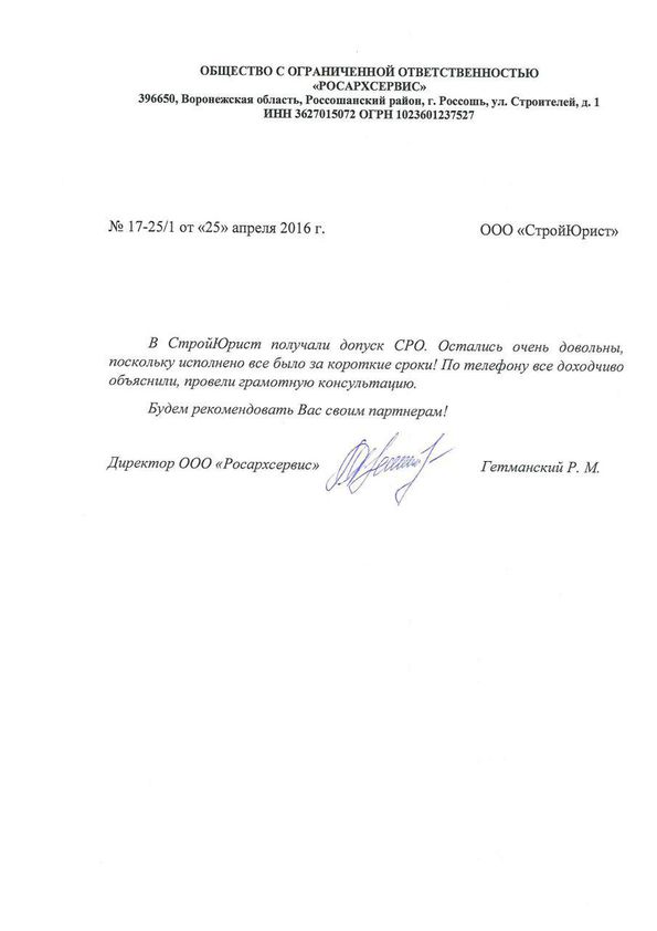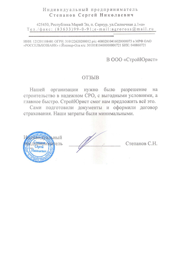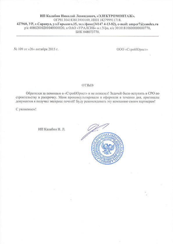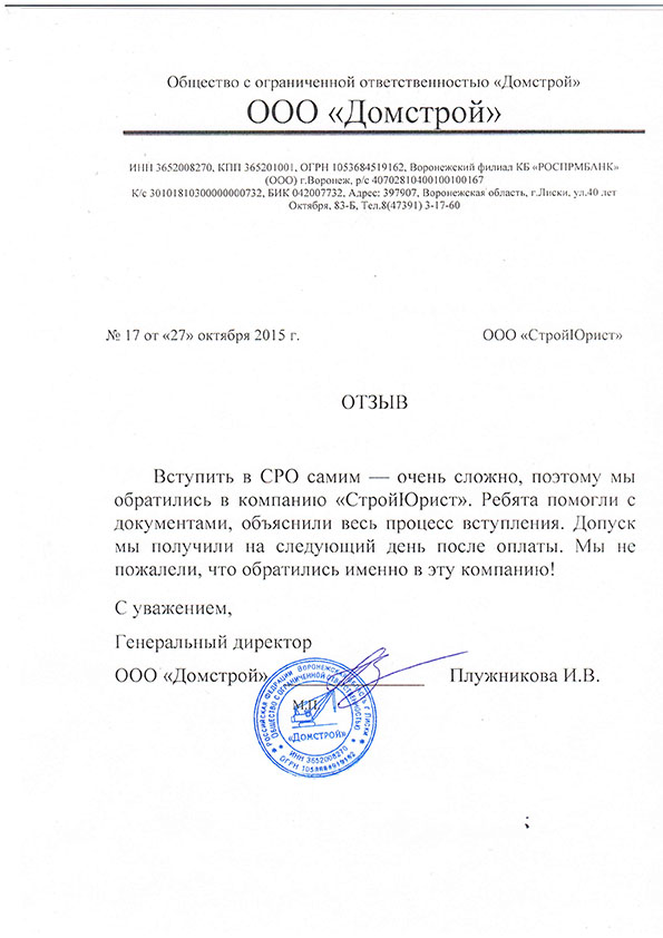Отзывы клиентов "СтройЮрист" по вступлению в СРО в Калининграде
