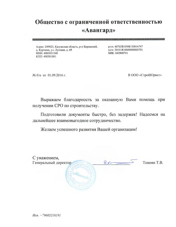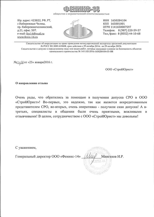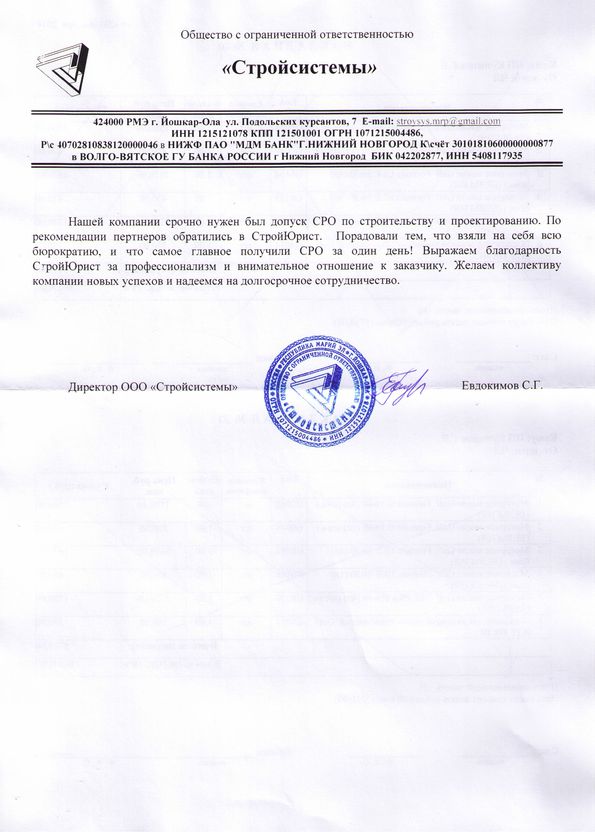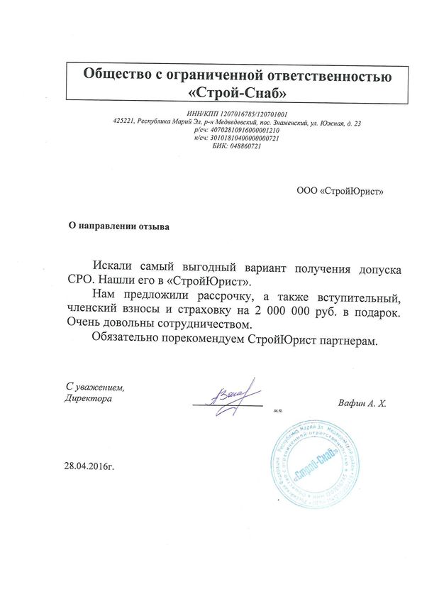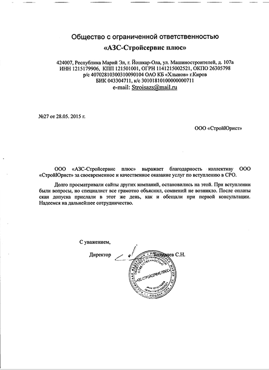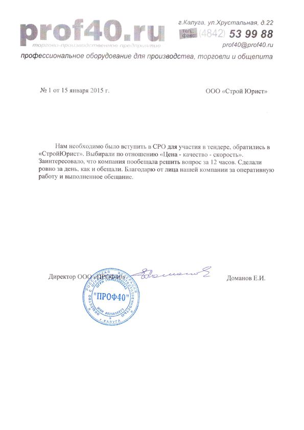 Отзывы клиентов "СтройЮрист" по вступлению в СРО в Калининграде