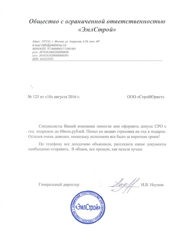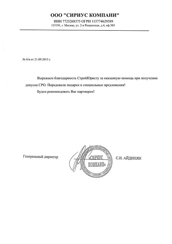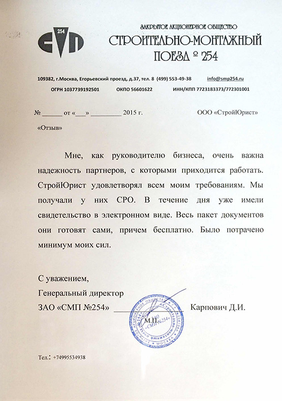 Отзывы клиентов "СтройЮрист" по вступлению в СРО в Калининграде