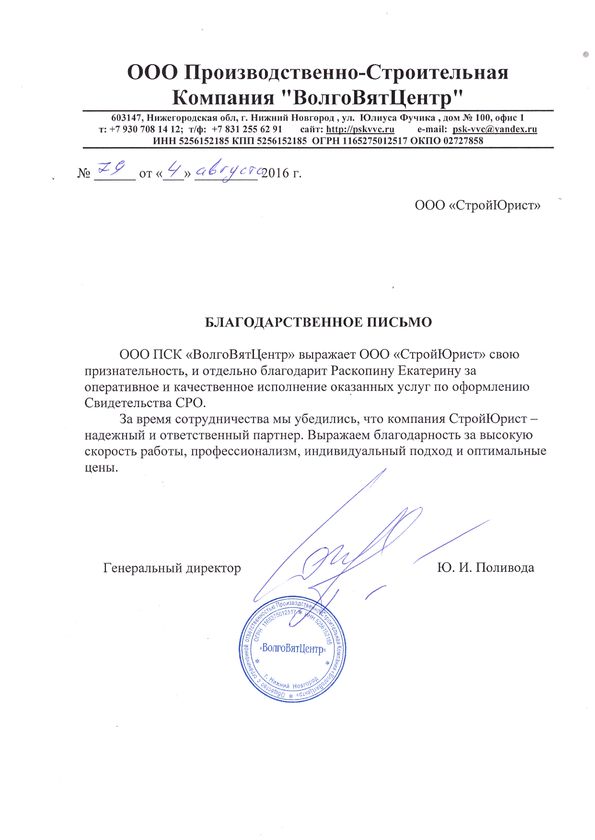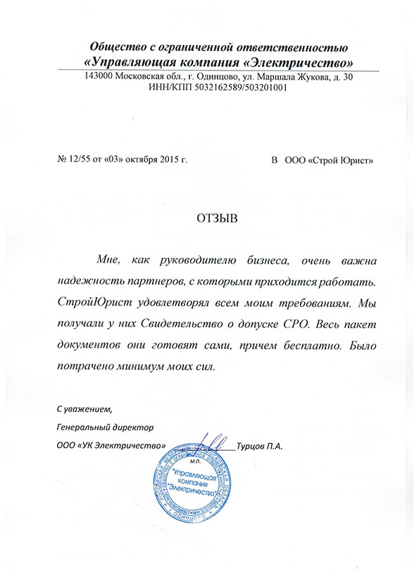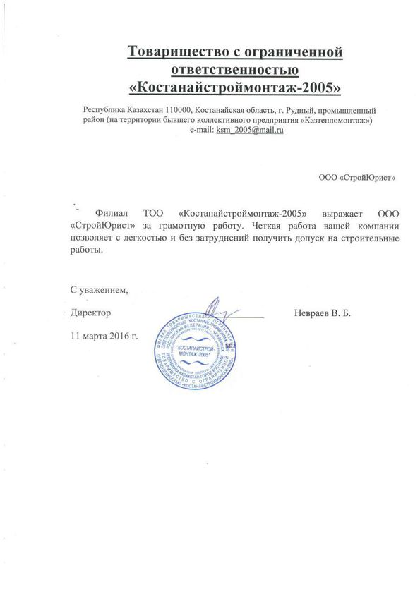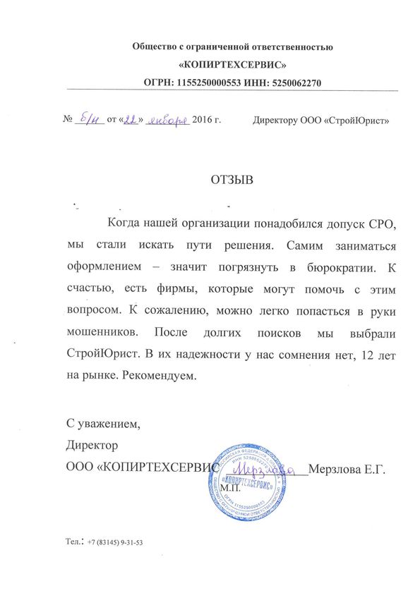 Отзывы клиентов "СтройЮрист" по вступлению в СРО в Калининграде