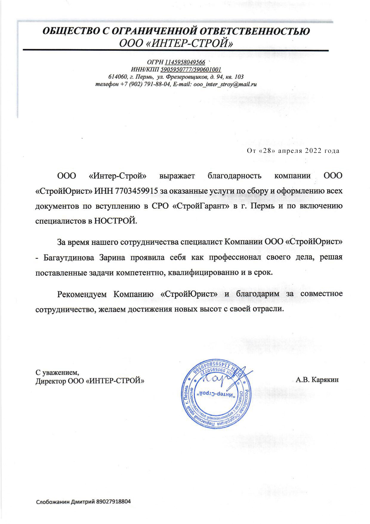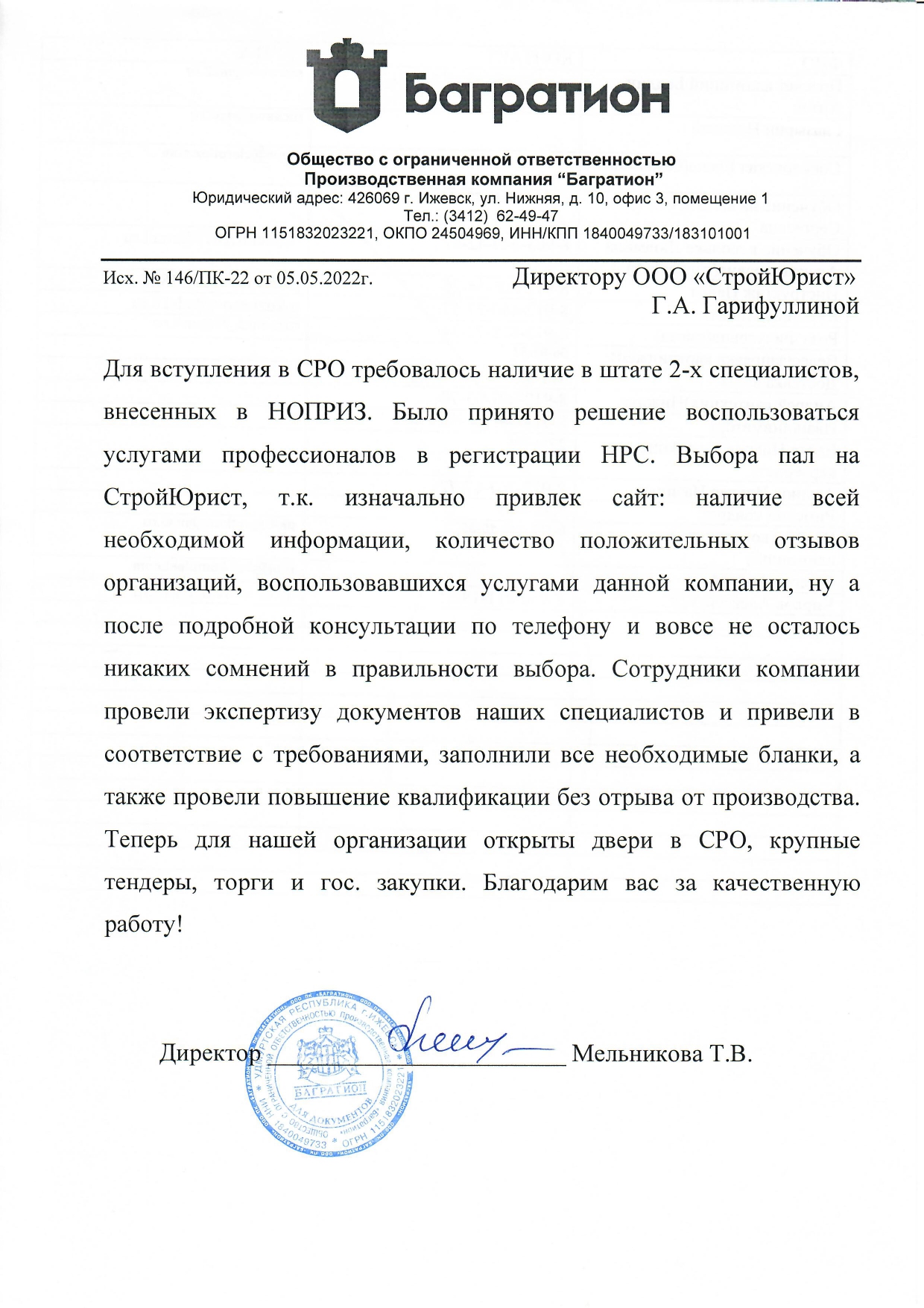 Отзывы клиентов "СтройЮрист" по вступлению в СРО в Калининграде