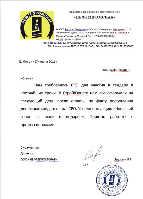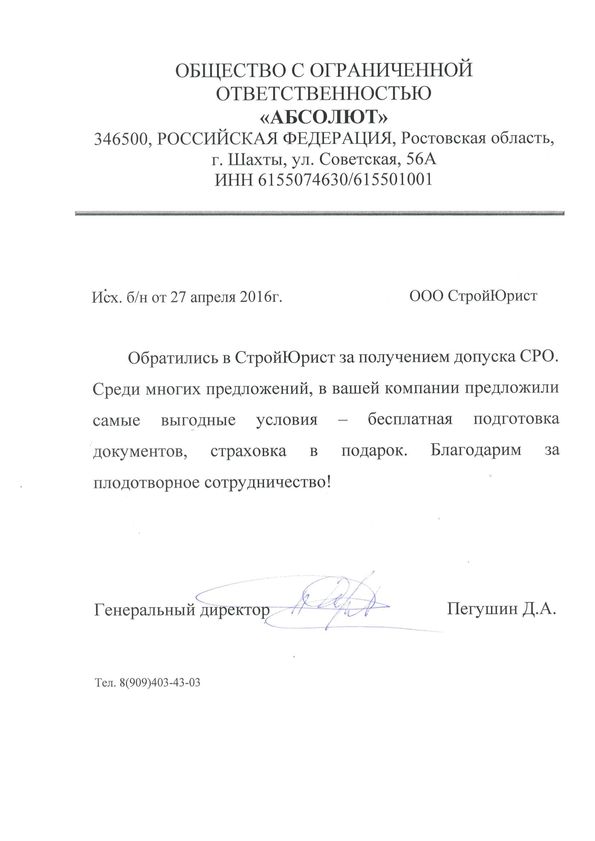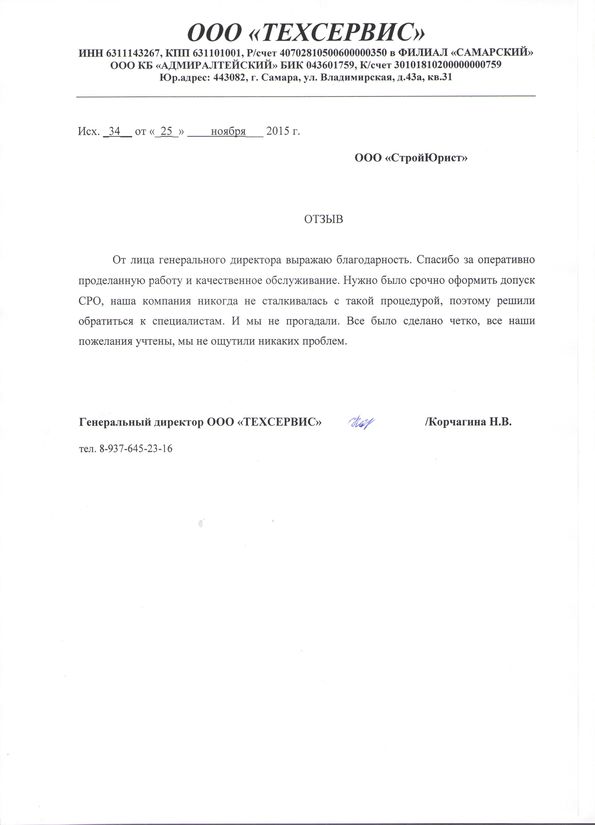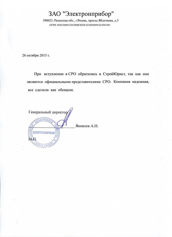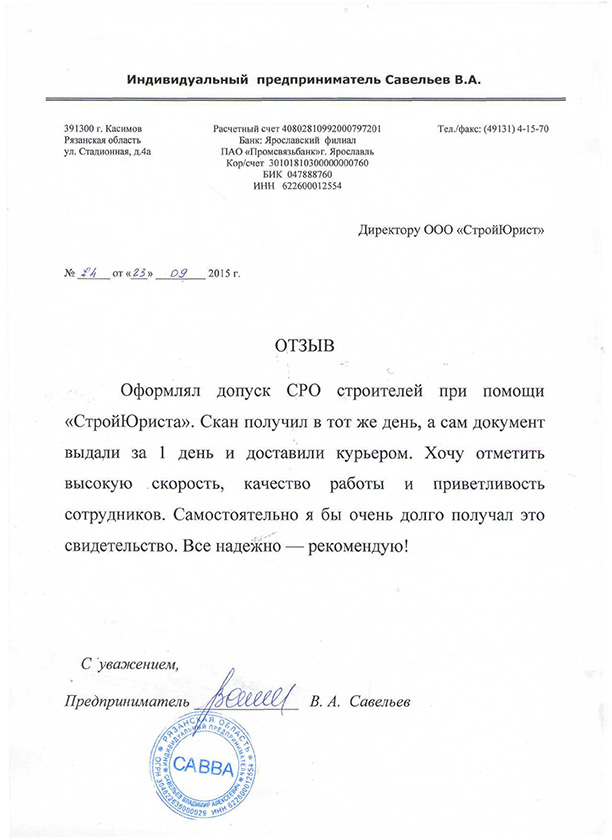 Отзывы клиентов "СтройЮрист" по вступлению в СРО в Калининграде