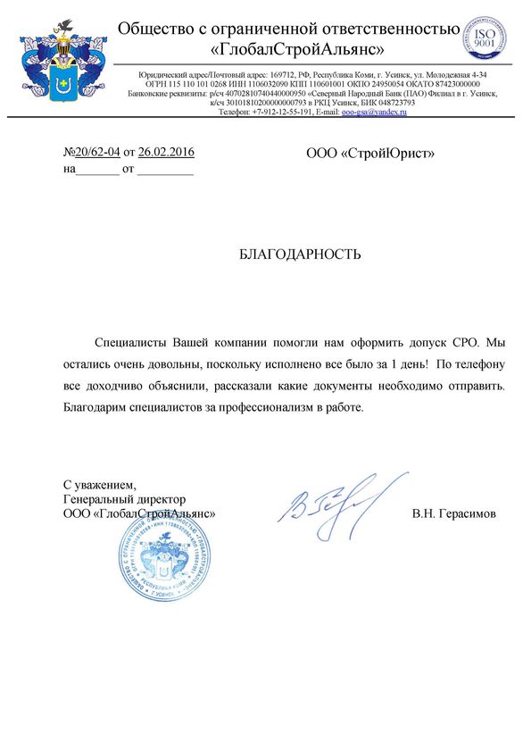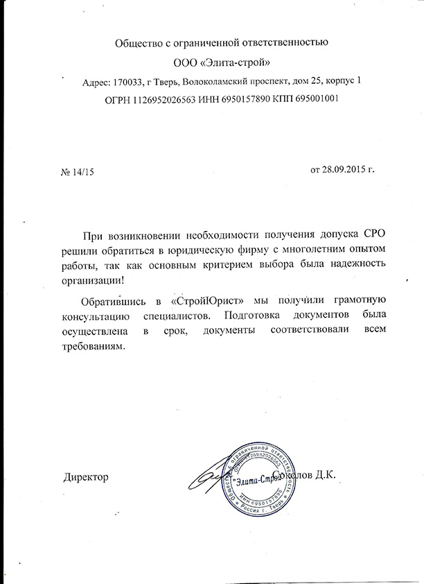 Отзывы клиентов "СтройЮрист" по вступлению в СРО в Калининграде