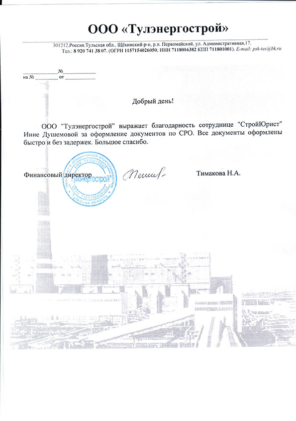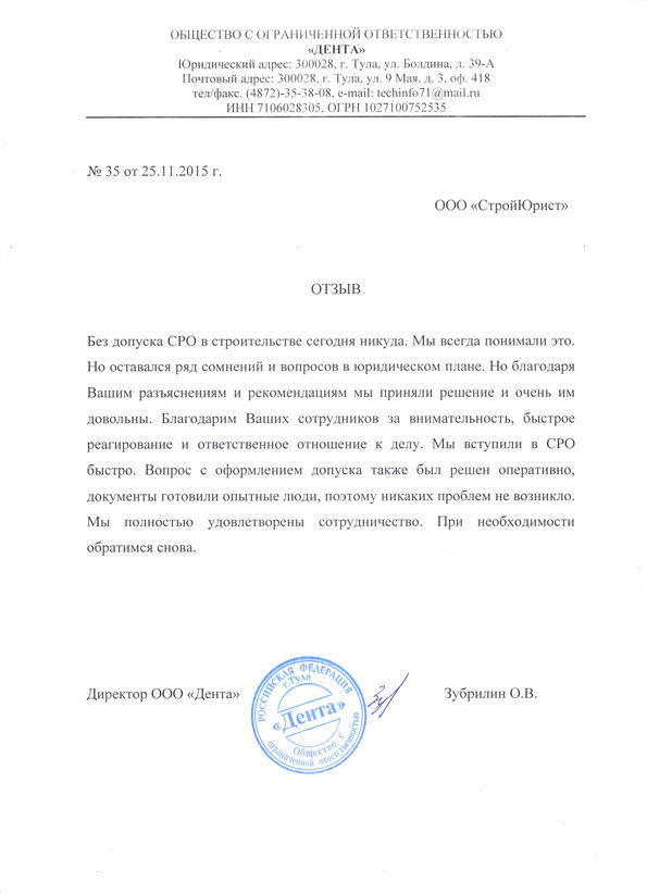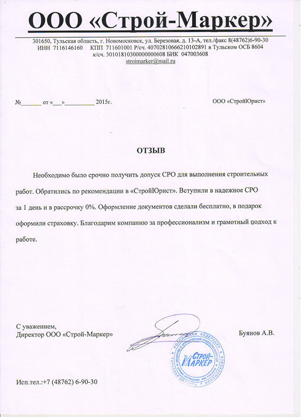 Отзывы клиентов "СтройЮрист" по вступлению в СРО в Калининграде