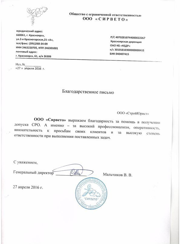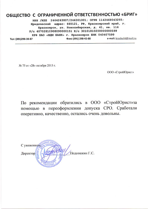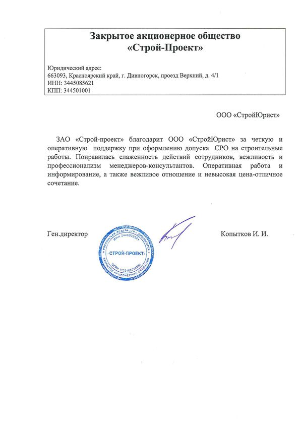 Отзывы клиентов "СтройЮрист" по вступлению в СРО в Калининграде