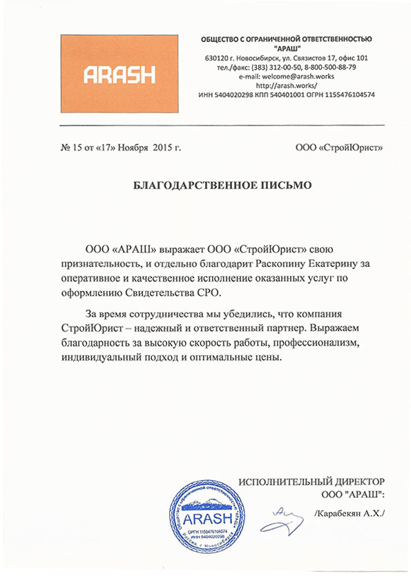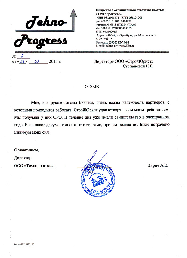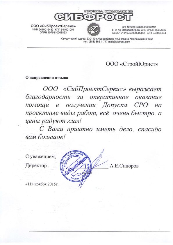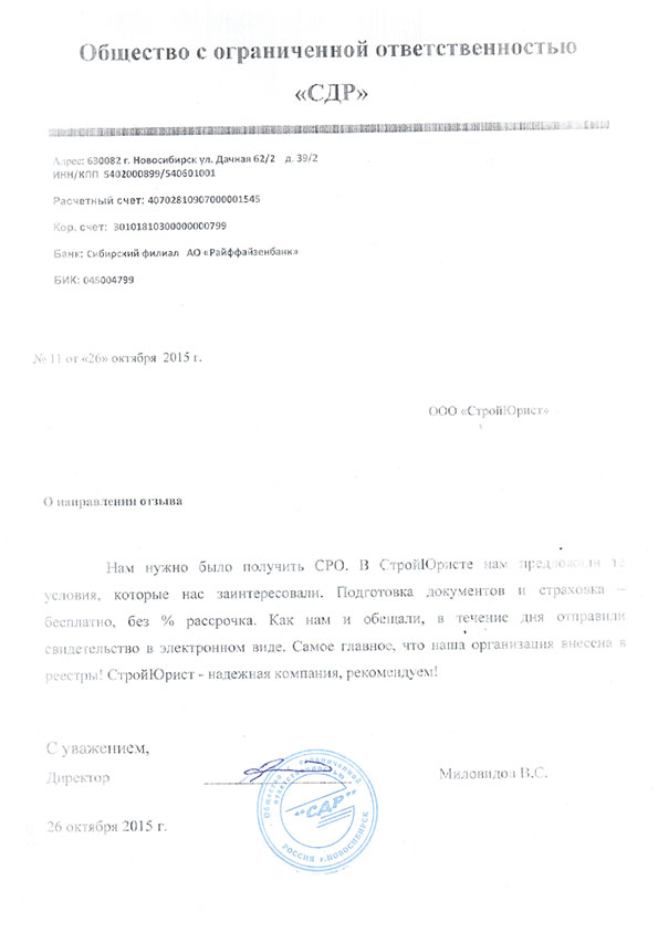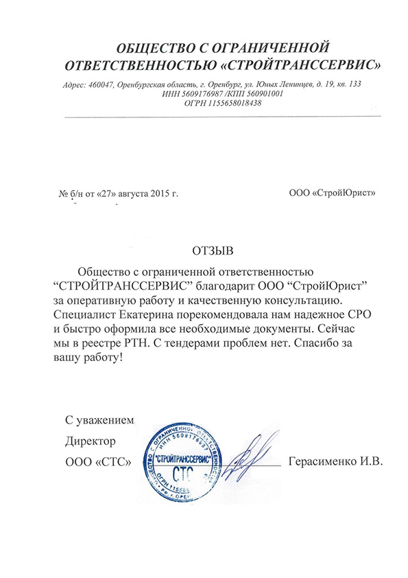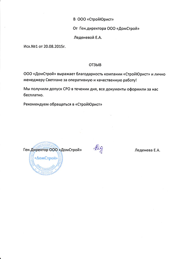 Отзывы клиентов "СтройЮрист" по вступлению в СРО в Калининграде