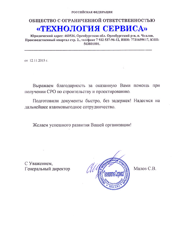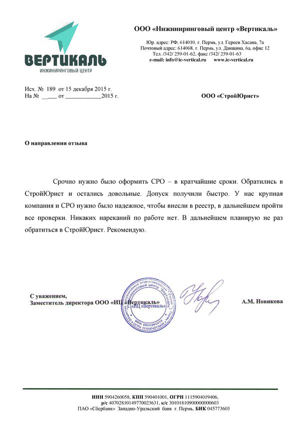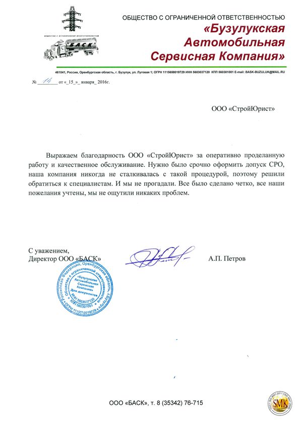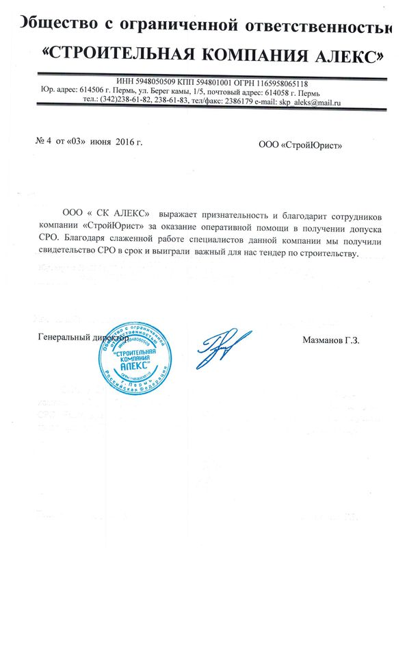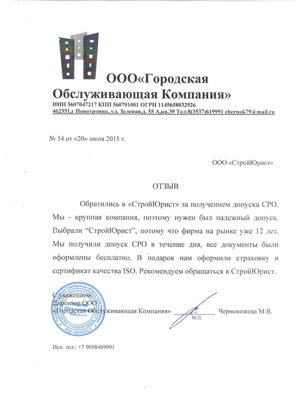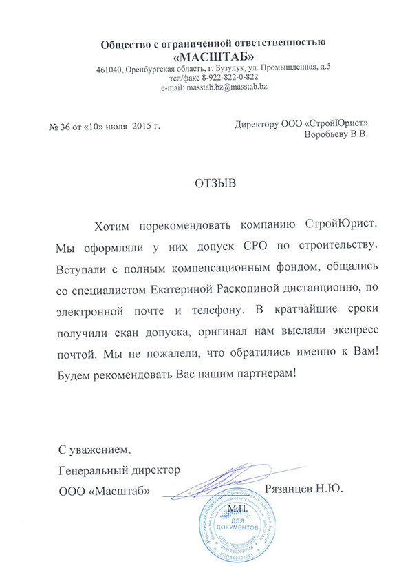 Отзывы клиентов "СтройЮрист" по вступлению в СРО в Калининграде