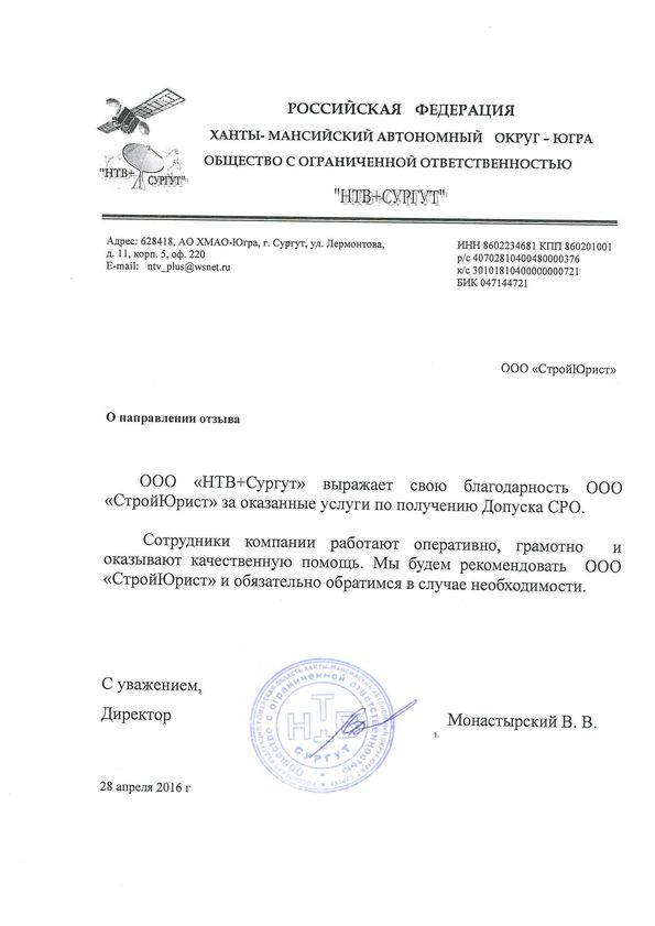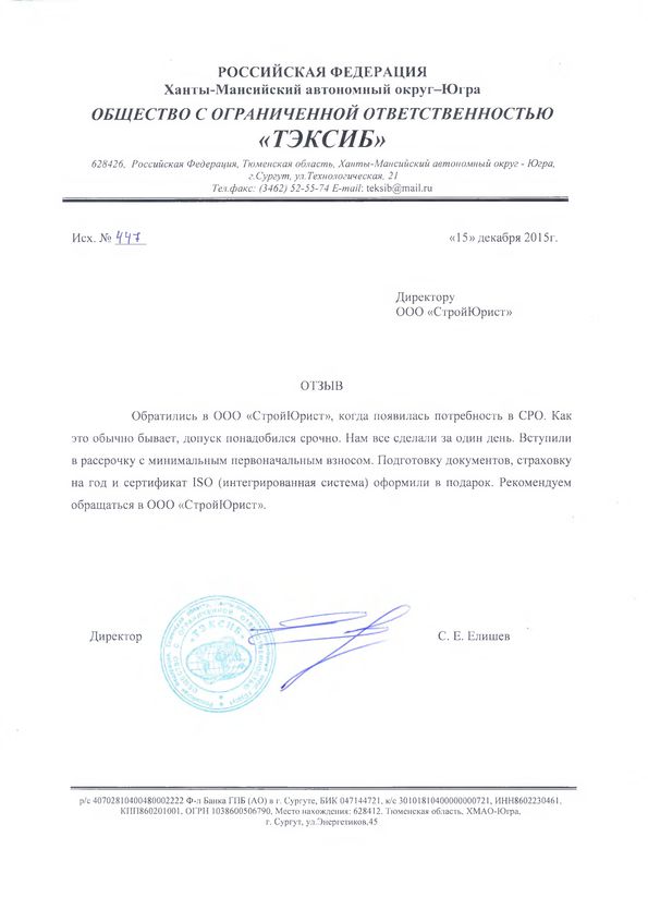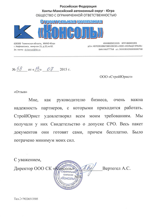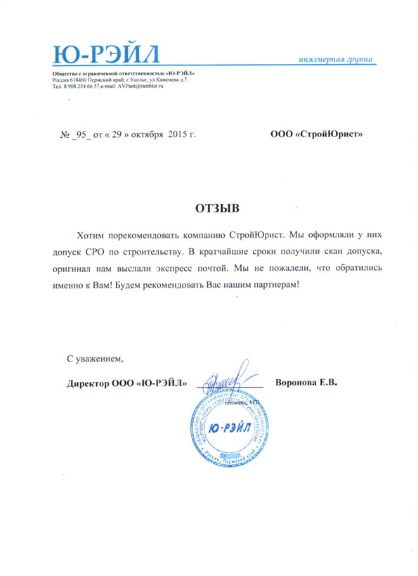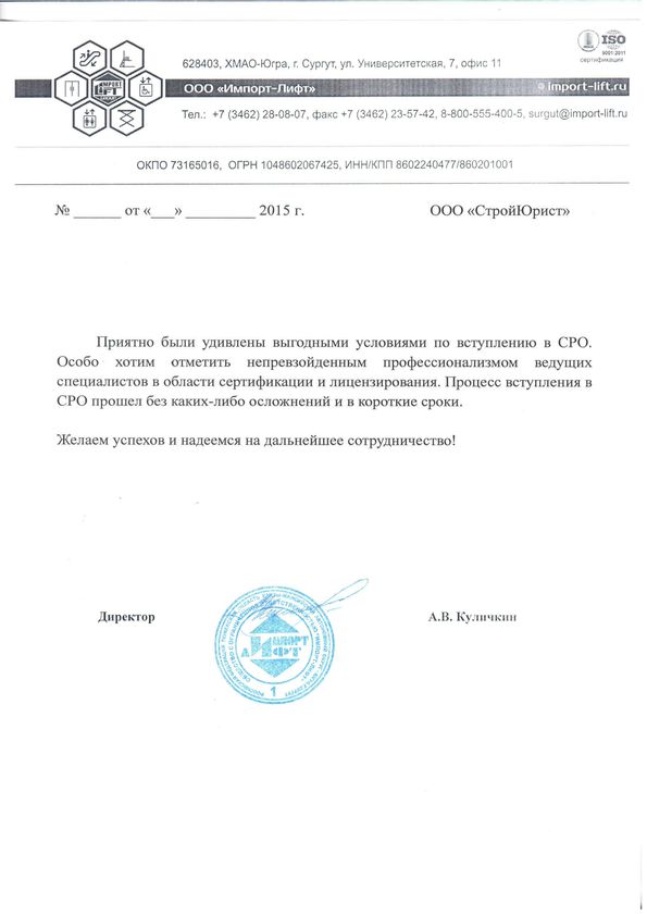 Отзывы клиентов "СтройЮрист" по вступлению в СРО в Калининграде