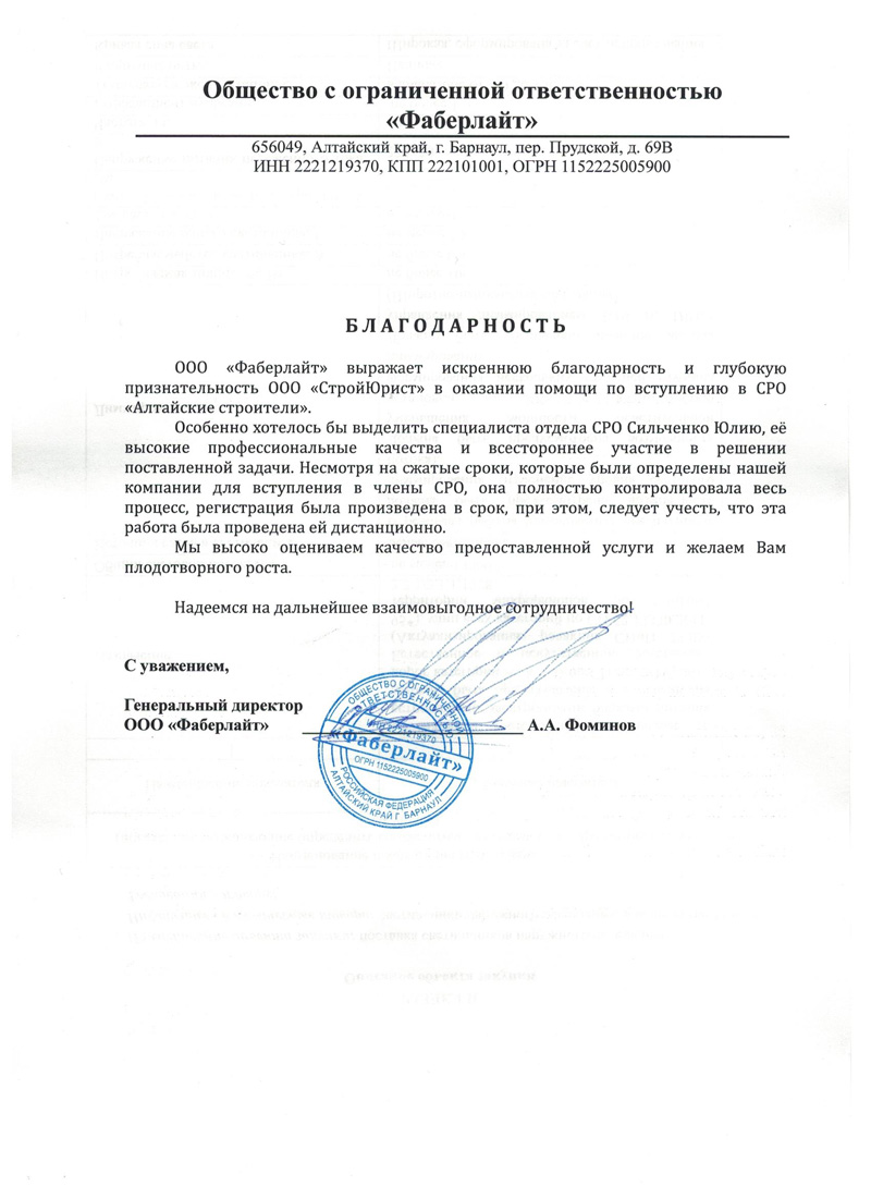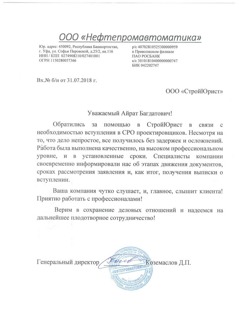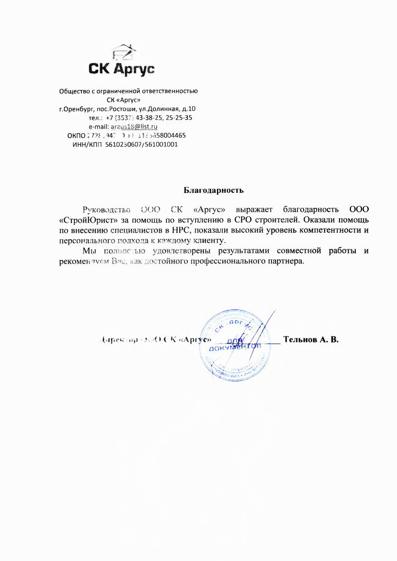 Отзывы клиентов "СтройЮрист" по вступлению в СРО в Калининграде