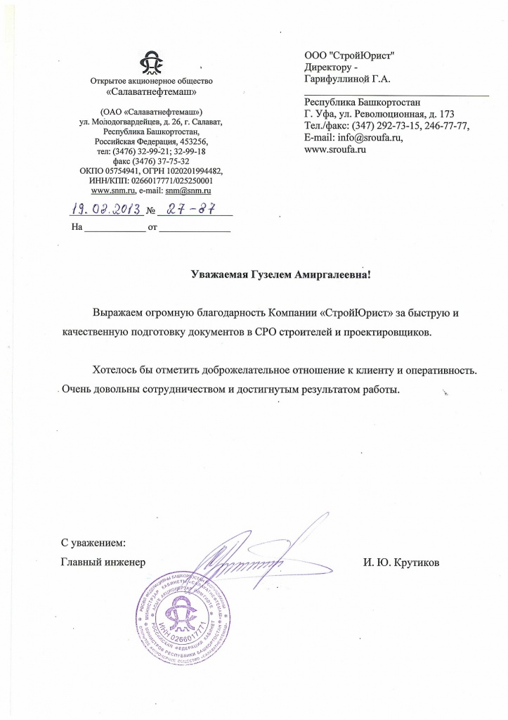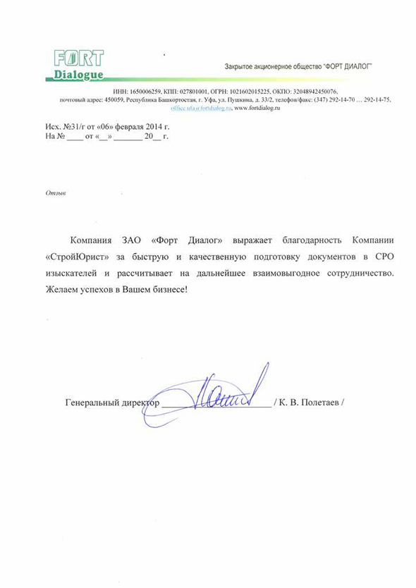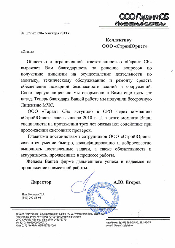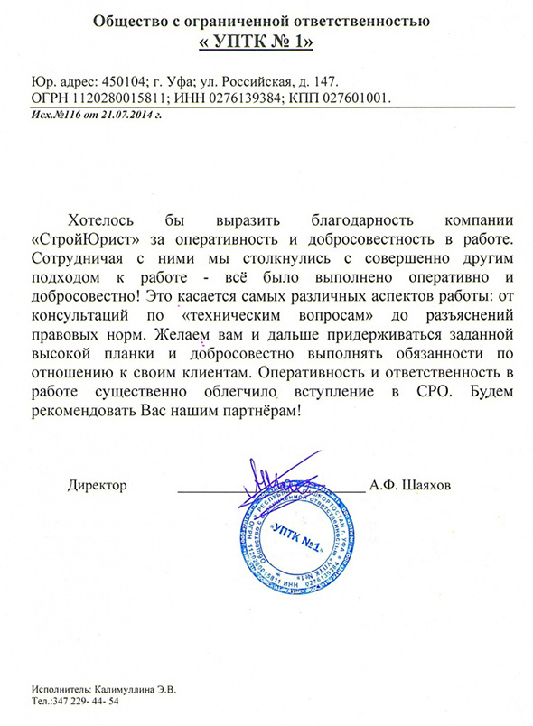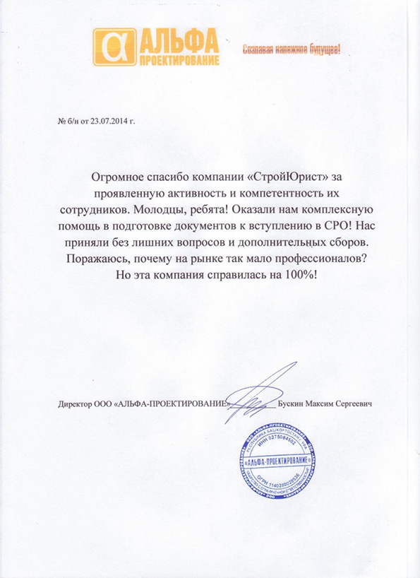 Отзывы клиентов "СтройЮрист" по вступлению в СРО в Калининграде