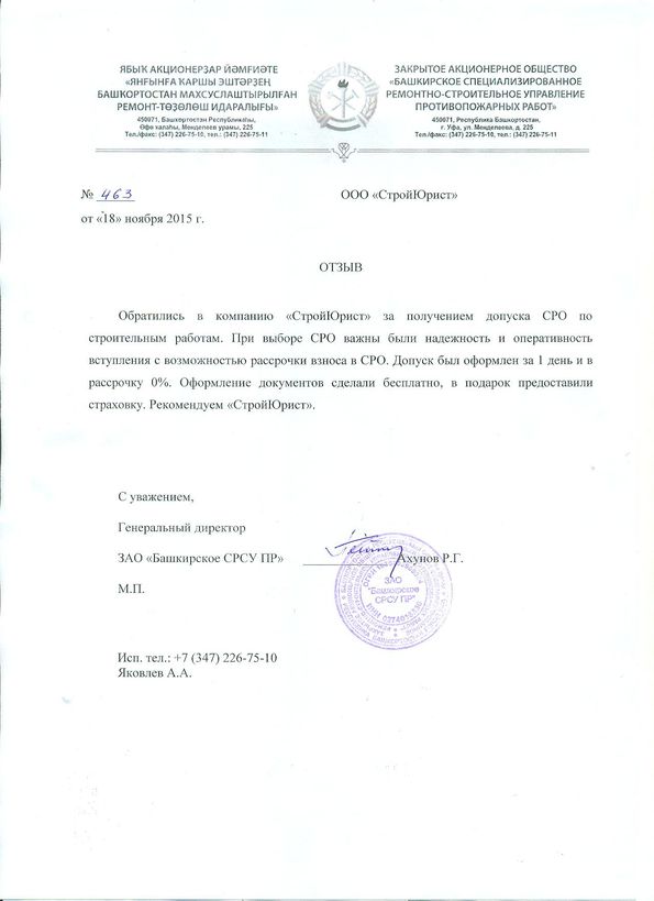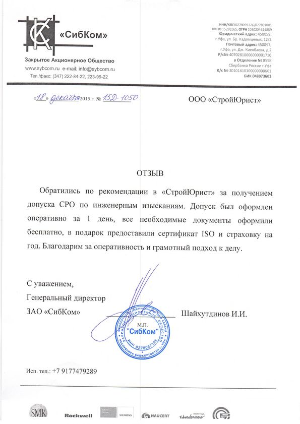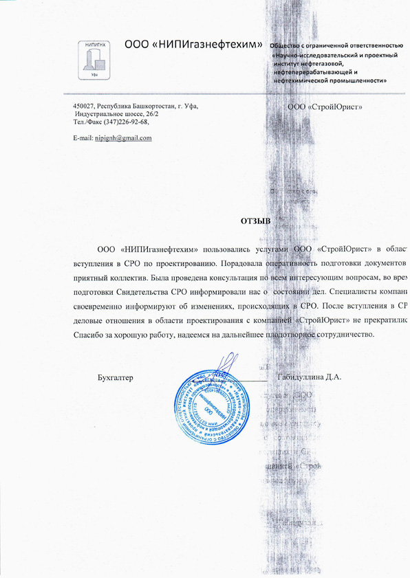 Отзывы клиентов "СтройЮрист" по вступлению в СРО в Калининграде