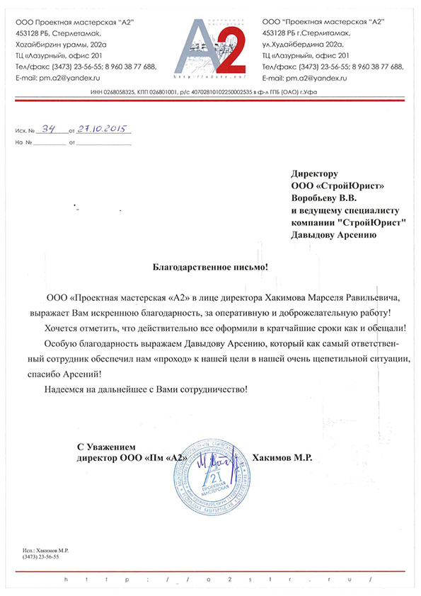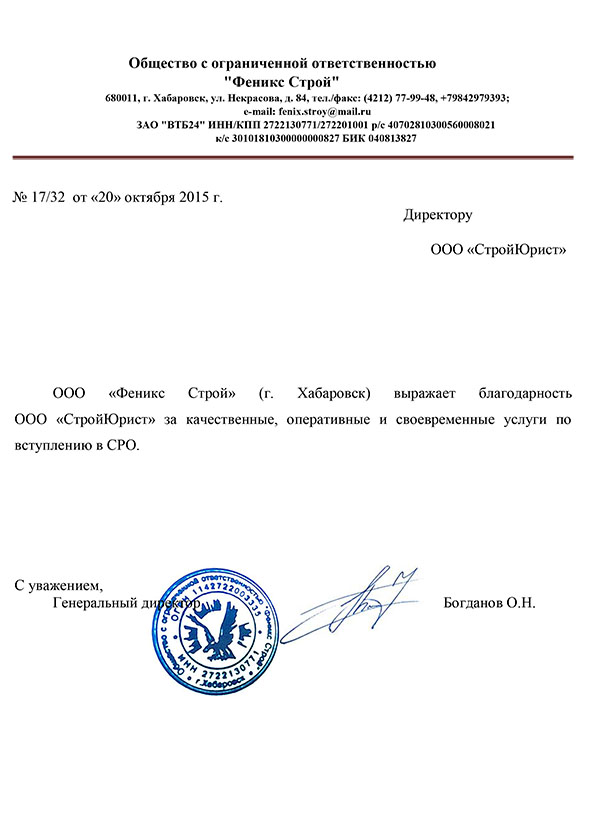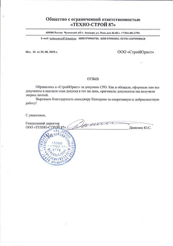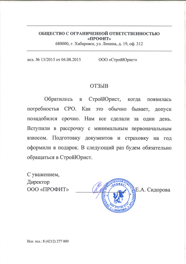 Отзывы клиентов "СтройЮрист" по вступлению в СРО в Калининграде