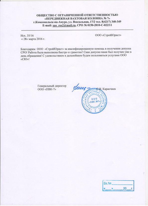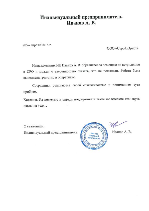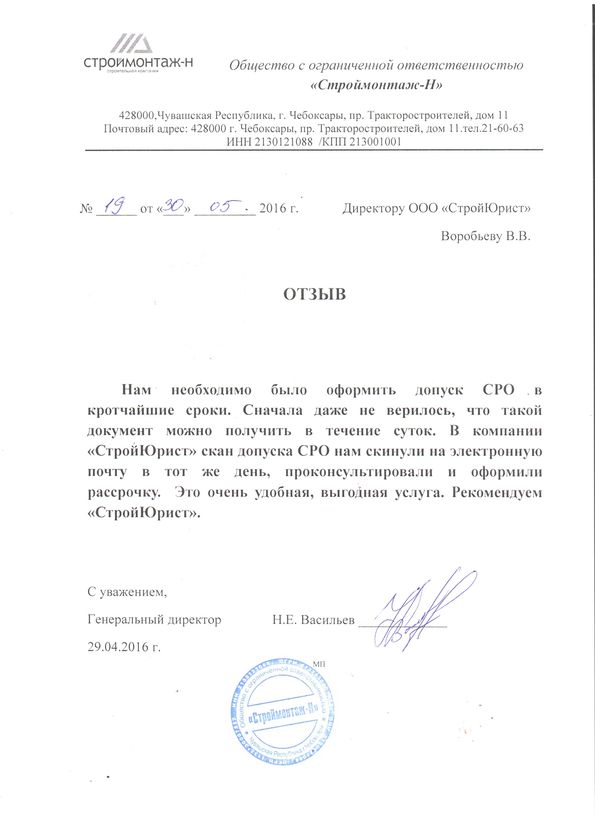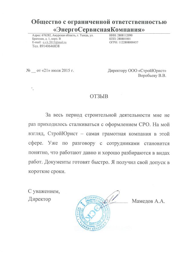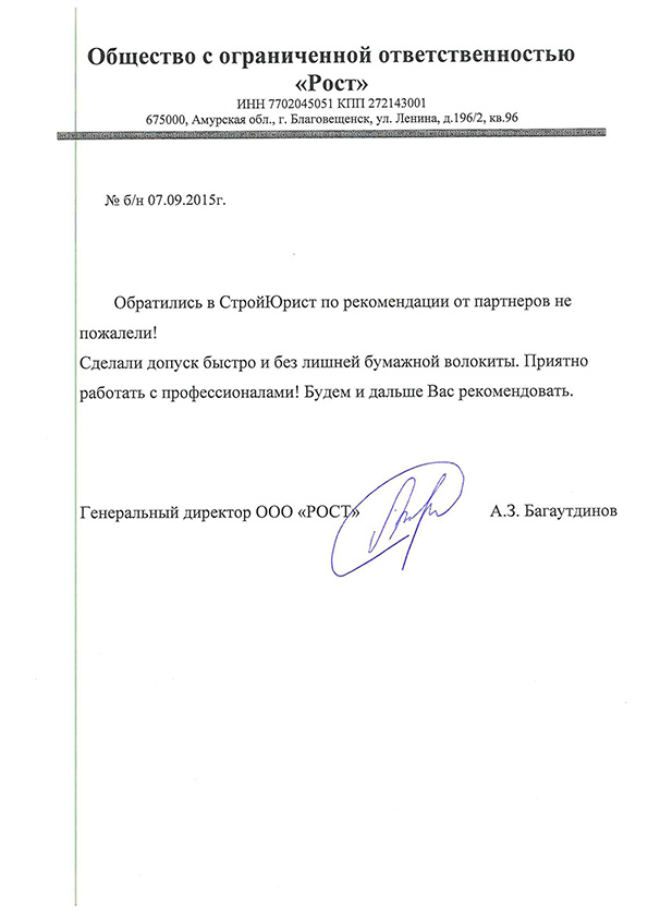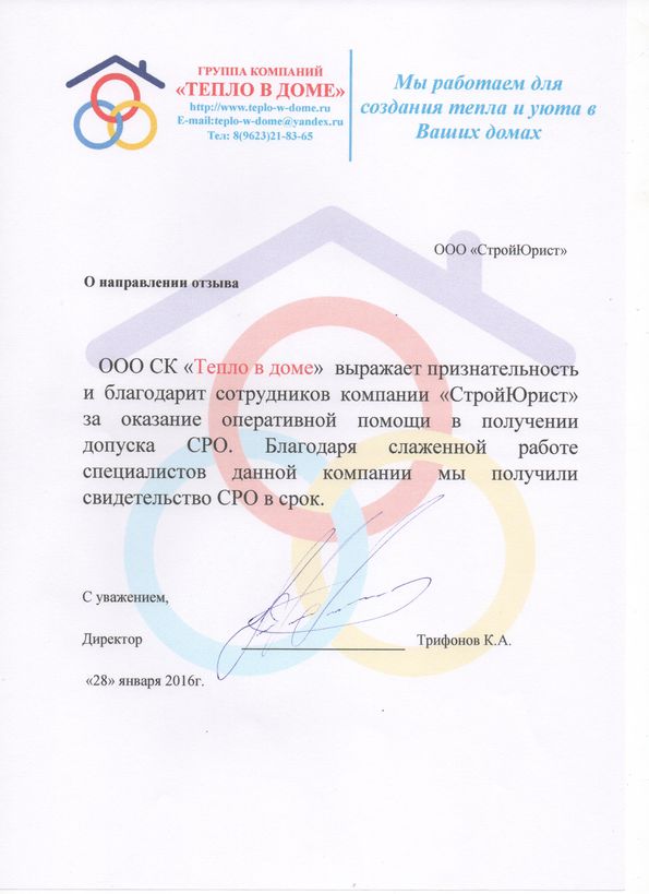 Отзывы клиентов "СтройЮрист" по вступлению в СРО в Калининграде