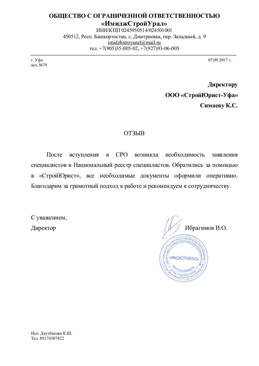 Отзывы клиентов "СтройЮрист" по вступлению в СРО в Калининграде